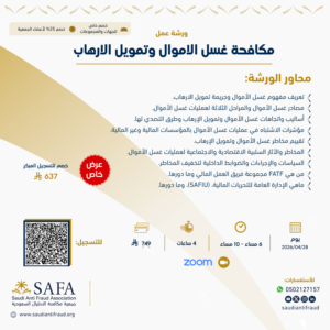 فهم ومعرفة ماهي جريمة غسل الأموال وجريمة تمويل الارهاب وماهي عقوبة غاسلي الأموال والمشاركين فيها وماهي مؤشرات الاشتباه بها وما هي الانظمة والإجراءات للتعامل معها.