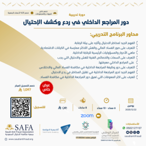 تهدف هذه الدورة الى اكساب المشاركين في التعريف على دور وظيفة المراجعة الداخلية في مكافحة الفسادى المالي و الاختلاس، و ماهي دور المراجعة الداخلية في تقليل المخاطر في ردع الاحتيال ؟ وكيف يمكن تفعيل هذا الدور؟